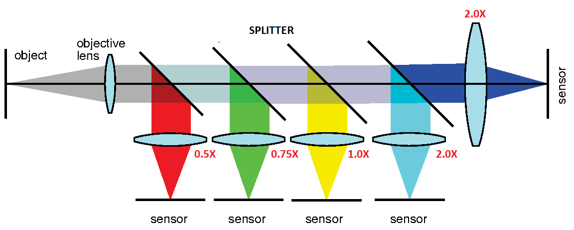Light travels through the body tube as parallel rays as it passes through the objective. These are focused by the tube lens to form a completely aberration-free intermediate image.